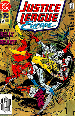 Justice League Europe was in no hurry to get back to high-octane excitement after the Extremists arc. The last two issues had seen the team playing around on the beach and shopping in London. Issue #22 involves an actual crime and a JLE-adjacent character in some jeopardy, but within those bounds, it’s still as low-stakes as you can imagine.
